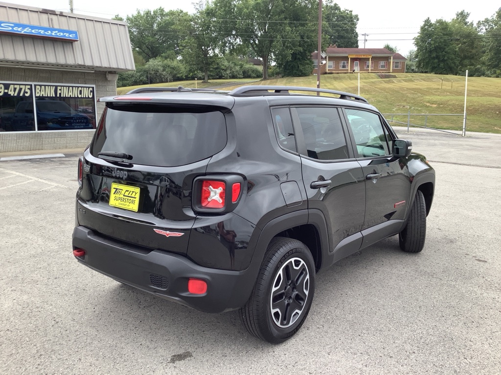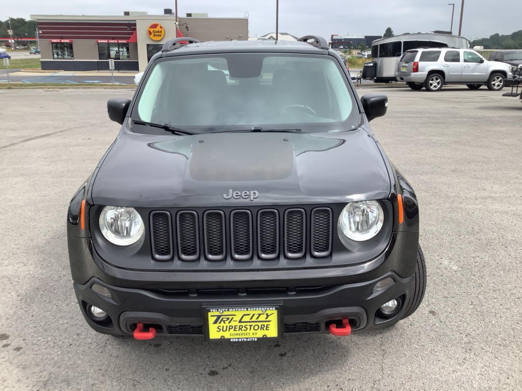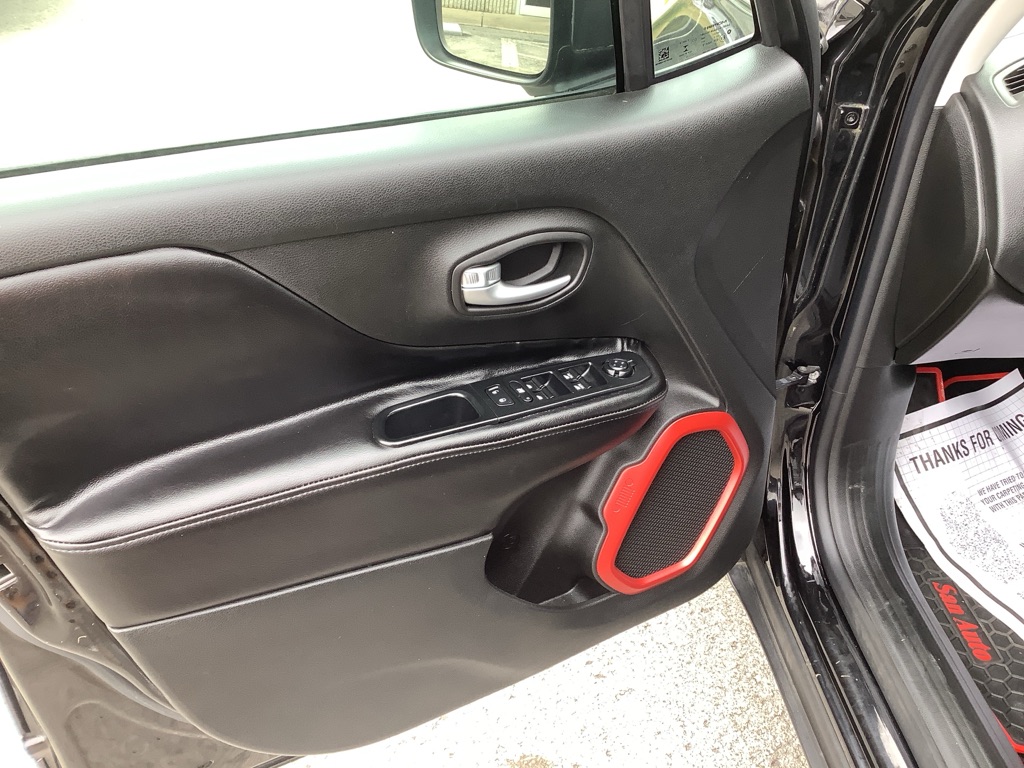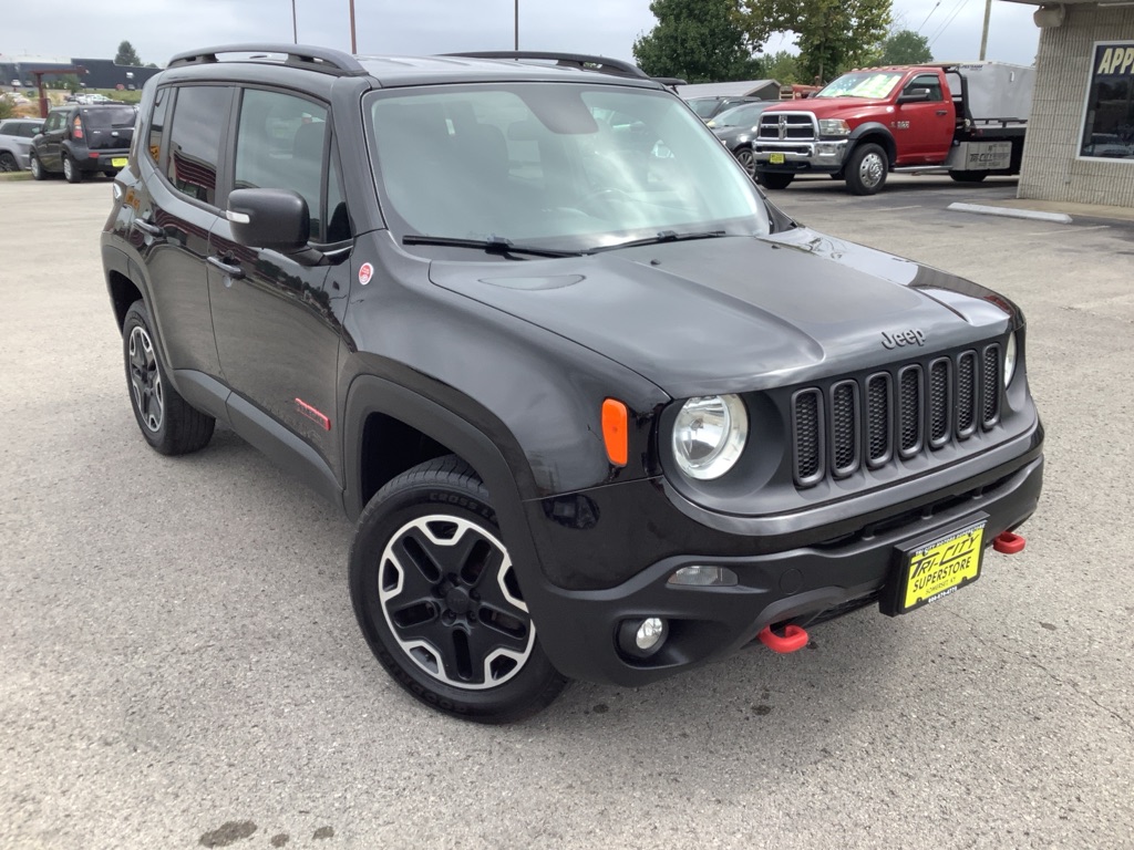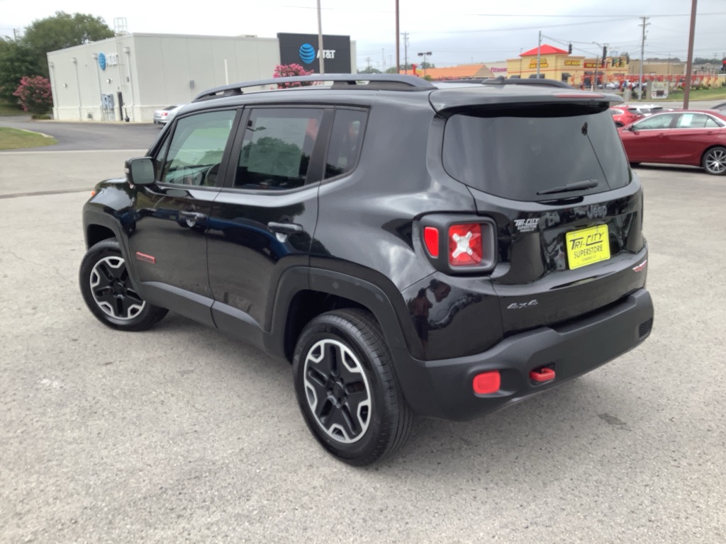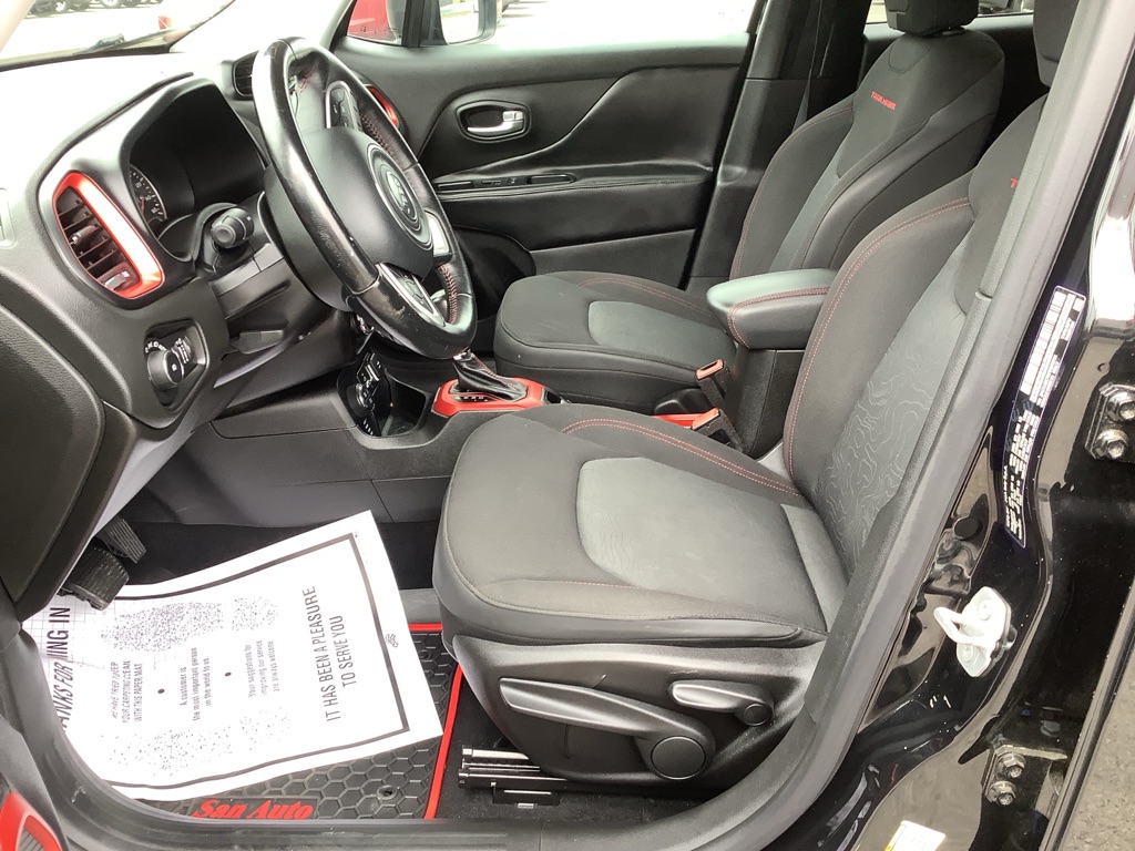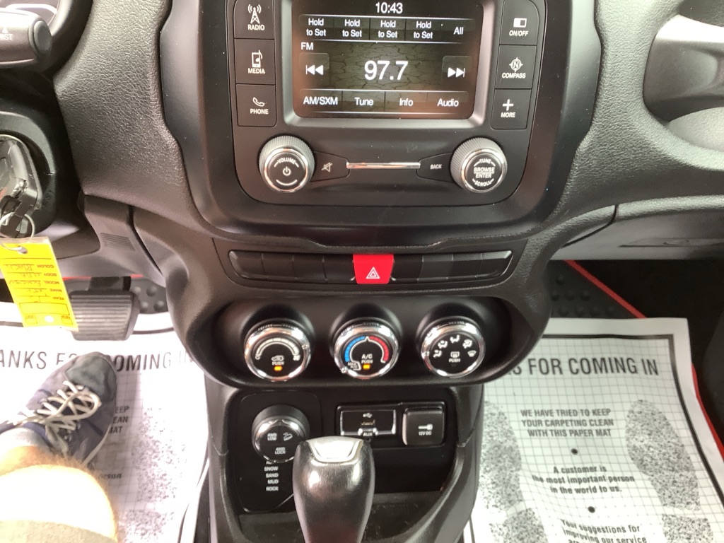 4 Wheel Drive Air Conditioning Anti-Lock Brakes Automatic Headlights Bluetooth Connection Brake Assist System Child Safety Locks Cruise Control Cylinders (4) Daytime Running Lights Driver Air Bag Engine Immobilizer Fog Lamps Heated Mirrors Intermittent Wipers Keyless Entry Keyless Entry ((1)Left) Leather Steering Wheel Master Key (1) Motor Fuel Type ((1)Gas) MP3 player Pass-Through Rear Seat Pass. Air Bag Power Brakes Power Locks Power Mirrors Power Steering Power Windows Privacy Glass Radio-AM/FM Rear Defroster Rear Floor Mats Rear Spoiler Reverse Camera Seat Trim ((1)Cloth) Side Airbags - Front Spare Tire ((1)Full Size) Steering Wheel Controls Stereo ((5)AM/FM Radio) Tilt Steering Wheel Tilt Wheel Tire Pressure Monitor System Traction Control Transmission ((1)Automatic Transmission) Trip Computer Turn Signal Mirrors Wheels Front Left ((3)Aluminum) Wheels Front Right ((3)Aluminum) Wheels Rear Left ((3)Aluminum) Wheels Rear Right ((3)Aluminum The 2015 Jeep Renegade Trailhawk, a 4-wheel drive, 4-door SUV, features a 2.4-liter 4-cylinder gasoline engine, known for its off-road capabilities with features like 8.7 inches of ground clearance and skid plates. Engine: 2.4-liter 4-cylinder gasoline engine. Drive: 4-wheel drive (4WD). Body Style: 4-door SUV. Off-Road Features: Trail Rated badge. 8.7 inches of ground clearance. Skid plates. Red tow hooks front and rear. 19 inches of water-fording capability.