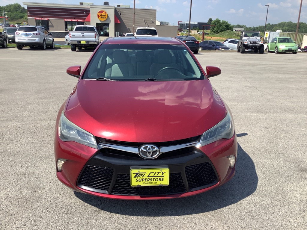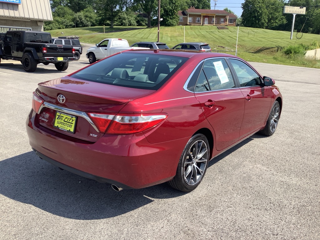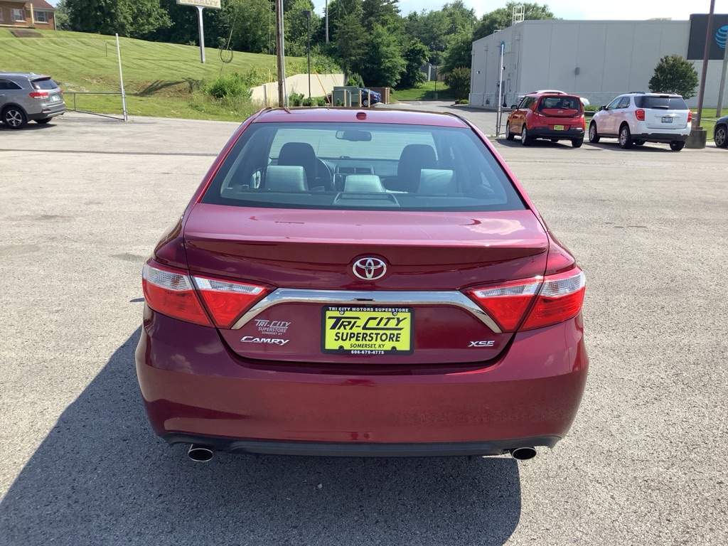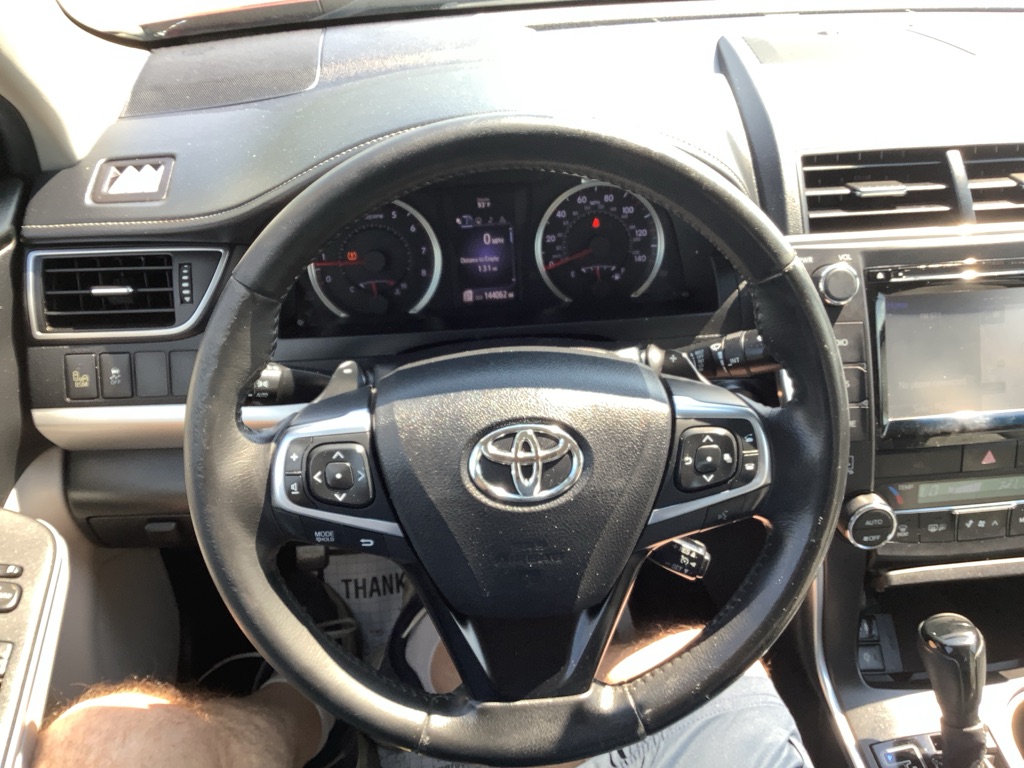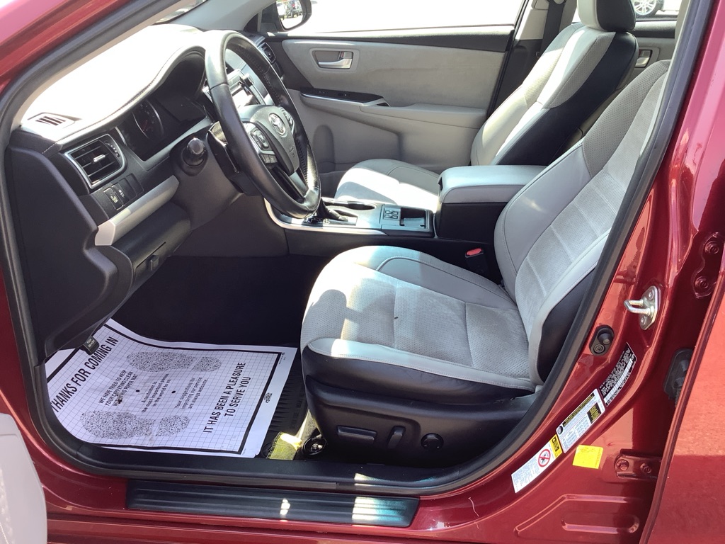 A/C ABS-Brakes Auto-Dimming Rearview Mirror Automatic Headlights CD Player Child Safety Locks Climate Control Cruise Control Daytime Running Lights Driver Air Bag Driver Vanity Mirror Engine Immobilizer Floor Mats Front Head Air Bag Front Side Air Bag Knee Air Bag Leather Steering Wheel Passenger Air Bag Passenger Air Bag Sensor Passenger Vanity Mirror Power Brakes Power Door Locks Power Mirror(s) Power Outlet Power Steering Power Windows Rear Defrost Rear Head Air Bag Rear Side Air Bag Rear Spoiler Remote Trunk Release Security System Stability Control Steering Wheel Audio Controls Tilt Steering Wheel Tire Pressure Monitor Traction Control Trip Computer Universal Garage Door Opener Variable Speed Intermittent Wipers Front Bucket Seats Rear Bench Seat Driver Adjustable Lumbar Heated Front Seat Pass-Through Rear Seat Power Driver Seat Power Passenger Seat The 2015 Toyota Camry XSE V6 features a 3.5-liter V6 engine producing 268 horsepower and 248 lb-ft of torque, paired with a 6-speed automatic transmission, offering a sporty driving experience with features like paddle shifters and a sport mode. Engine & Performance: Engine: 3.5-liter V6 engine Horsepower: 268 hp Torque: 248 lb-ft Transmission: 6-speed automatic with manual shifting mode Drivetrain: Front-wheel drive Fuel Economy: EPA-estimated 21/31 mpg city/highway
